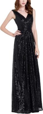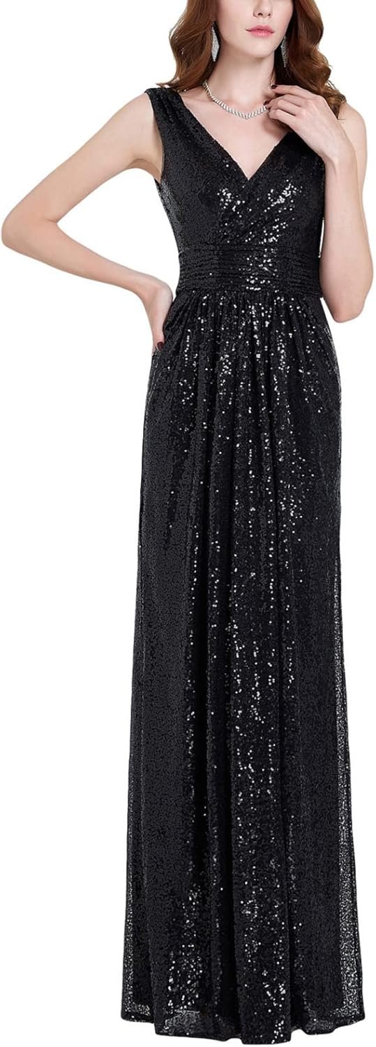 - Design: Wrap deep v neck, v back, full of shiny sequins, sleeveless, empire waist, concealed zipper in back, maxi long length cut.