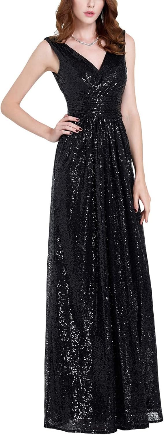 Women Sequin Bridesmaid Dress Sleeveless Maxi Evening Prom Dresses