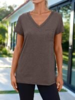 - Match: This womens casual v neck short sleeve tees with chest pockets is easy to match with jeans, shorts, sweatpants, leggings, cago pants. Also can wear as a undershirt and match with casual coat or jacket. Creat a chic and stylish daily look.