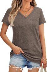 Womens T Shirts Short Sleeve V Neck Tops with Pockets Summer Fashion Trendy Soft Casual Comfy Outfits Clothes 2024