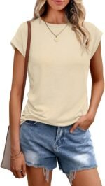 Womens Tops Casual Dressy Basic T Shirts Loose Fit Crewneck Cap Sleeve Tee Summer Outfits 2024